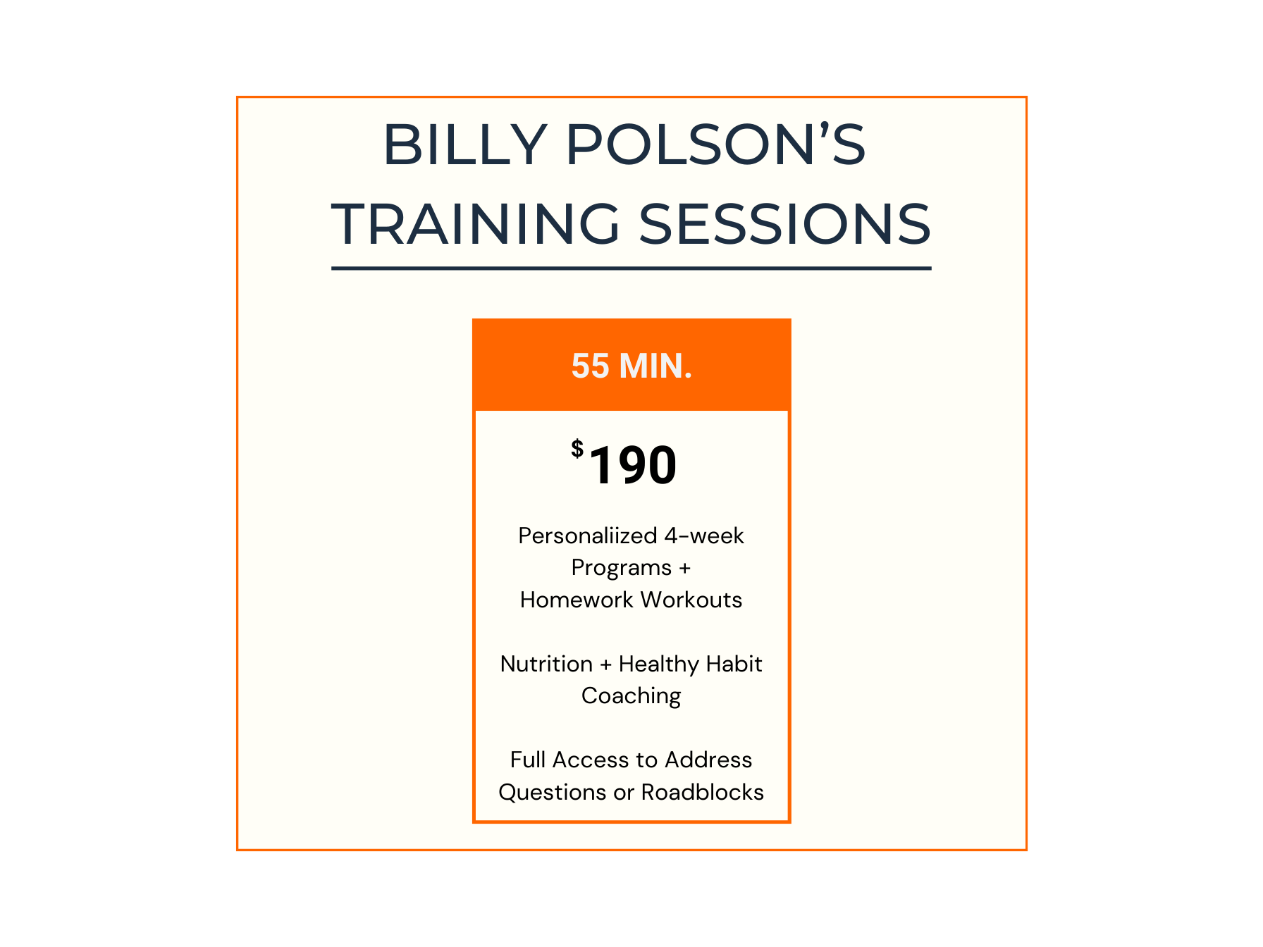 Program pricing and more details are included in the graphic below and will also be fully discussed during your complimentary consultation with Billy.